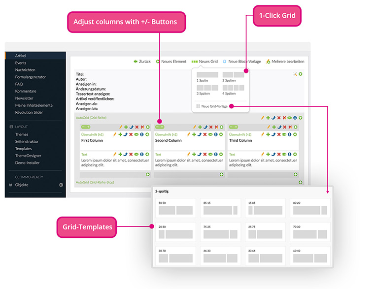 Probably the most user-friendly grid system for Contao with live grid preview in the backend.