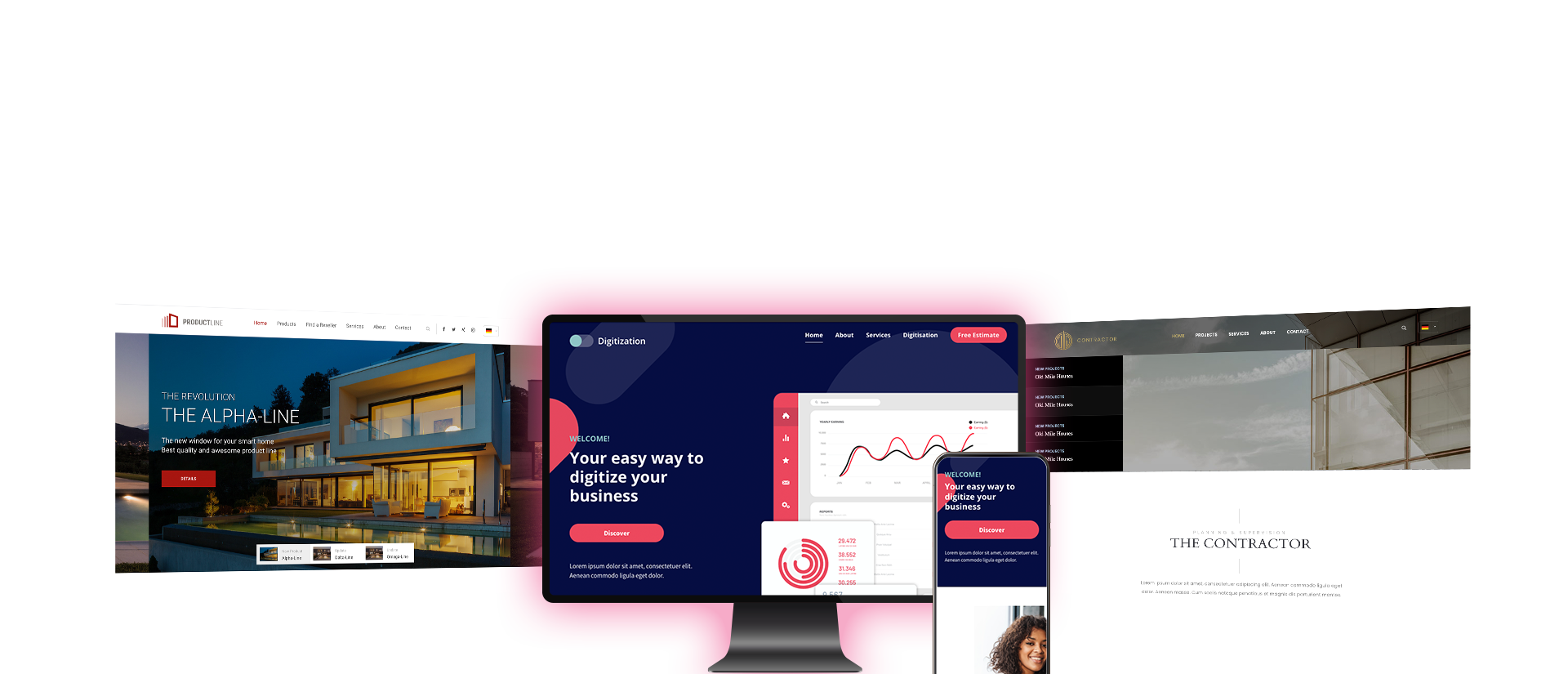 185+ ready-made websites and layouts for various industries and requirements.